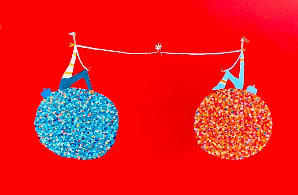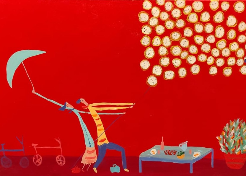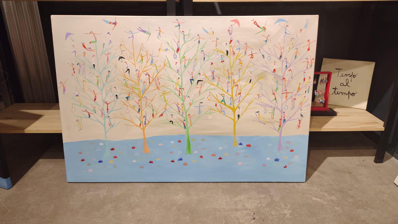 Constelaciones 100x100cmNo hay como un Sí para pegar la vuelta 70x100cmDespués de la tormenta llega el encuentro 60x50cmEl que atrasó el reloj